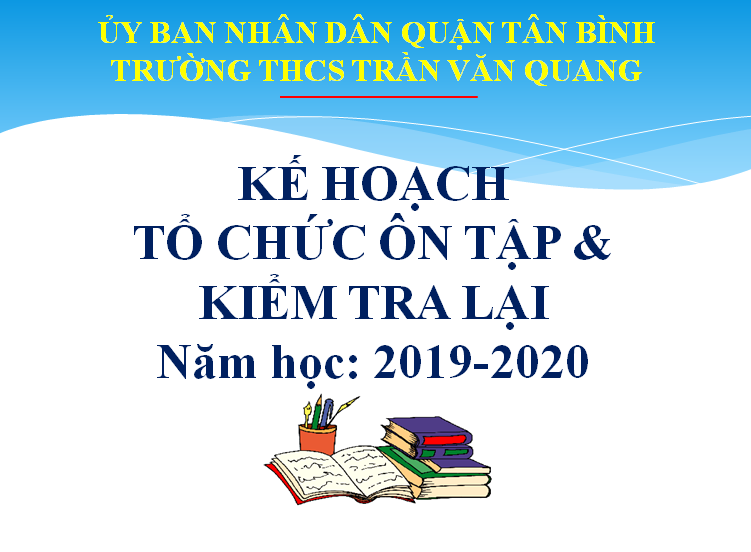 Trường THCS Trần Văn Quang xây dựng Kế hoạch tổ chức ôn tập và kiểm tra lại năm học 2019 – 2020 như sau.
