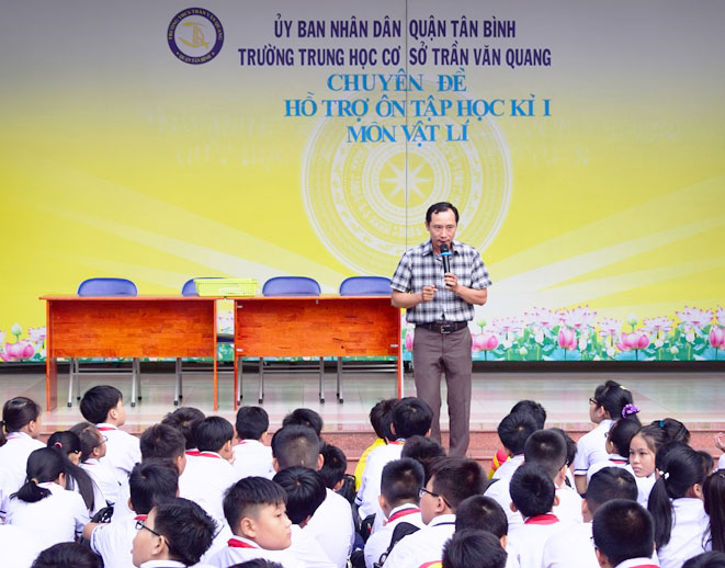 Sáng nay, ngày 03/12/2018 Tổ Vật Lý đã triển khai sinh hoạt chuyên đề: Hỗ trợ ôn tập học kì I môn Vật Lý dưới sân cờ. Buổi sinh hoạt nhằm giúp học sinh ôn lại những kiến thức trọng tâm đã được học, khơi gợi lòng đam mê học Vật Lý của học sinh.Thầy Nguyễn Văn Tiệp đã tổ chức sinh hoạt chuyên đề thu hút và học sinh tham gia sôi nổi.